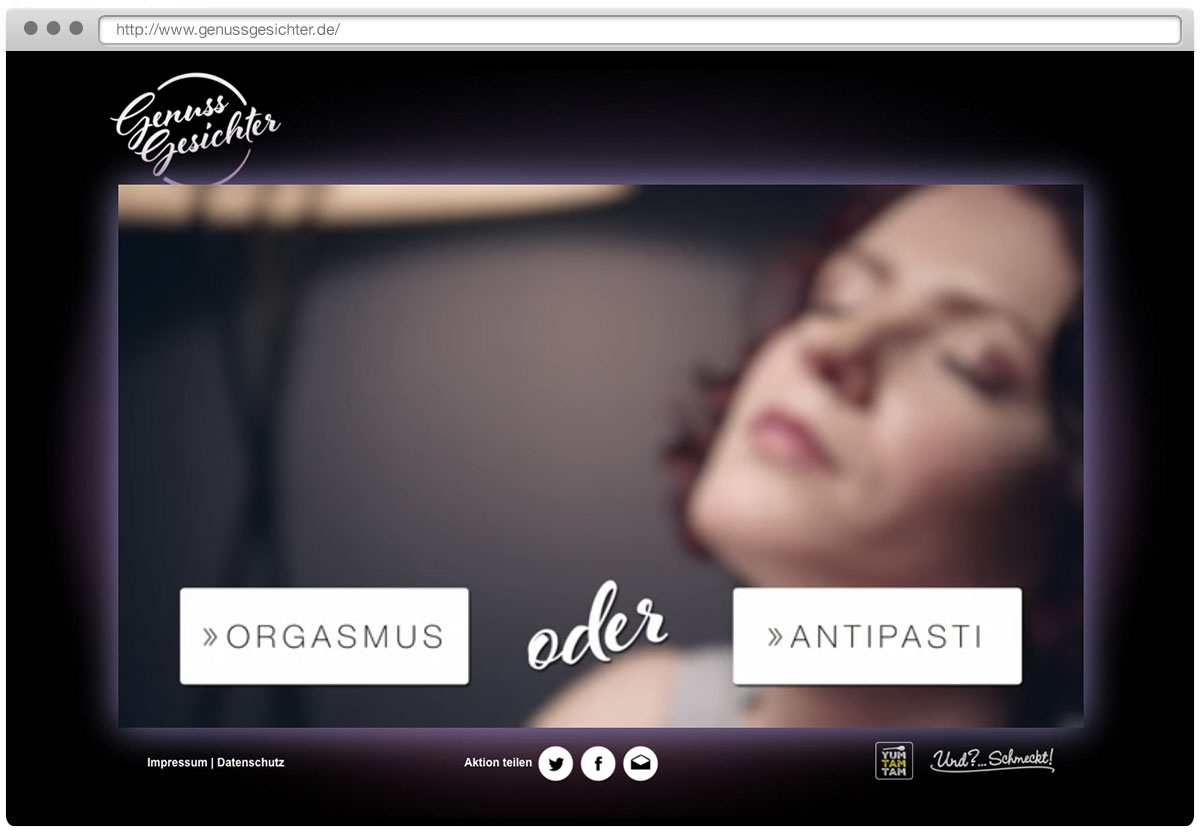 Being brave as always EDEKA decided on doing a titillating video quiz, where the user had to judge whether he or she was witnessing someone really enjoying food or having a real orgasm. Recipes for delicious meals were also provided, though sex advice was not. I had the pleasure of designing the microsite and logo of this daring experiment – that regrettably was only online for a limited time.